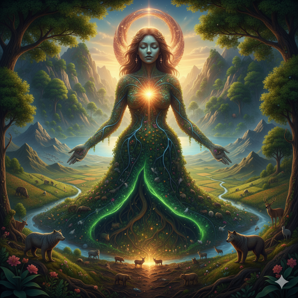 Gaia embodies the divine feminine—nourishing, cyclical, and profoundly intuitive. She teaches us to move with the rhythms of the Earth: the turning seasons, the waxing and waning moon, and the continual cycles of birth, growth, death, and rebirth. This relationship with Gaia cultivates a sense of belonging, purpose, and a felt sense of the universe’s steady care.